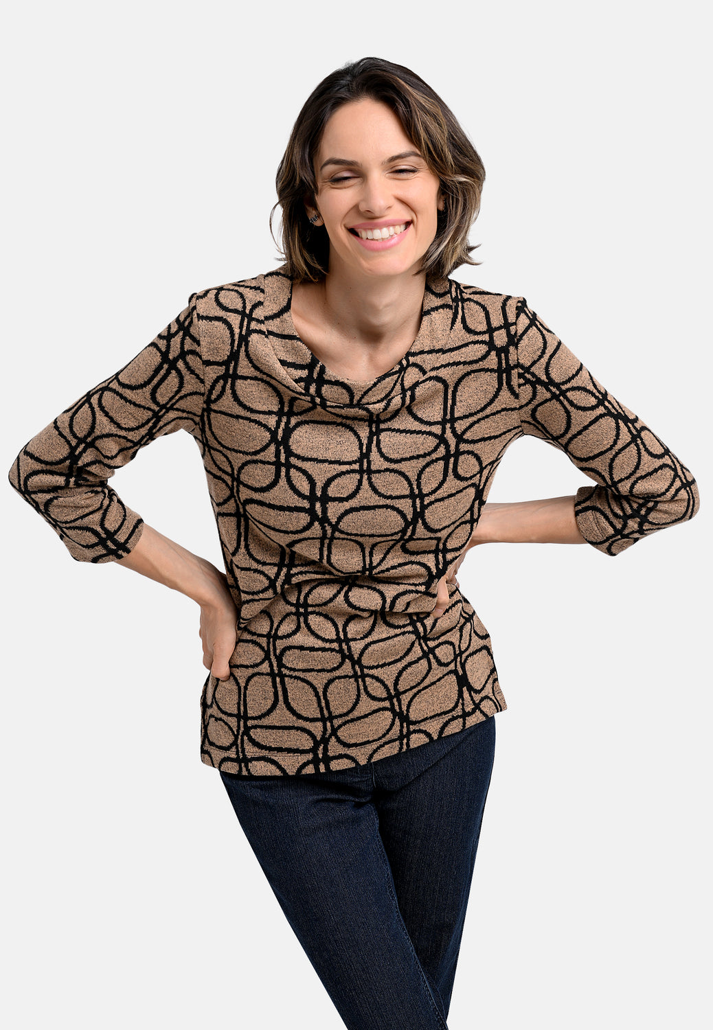 25815 Strick-Shirt mit Jacquard-Muster in Braun/Schwarz