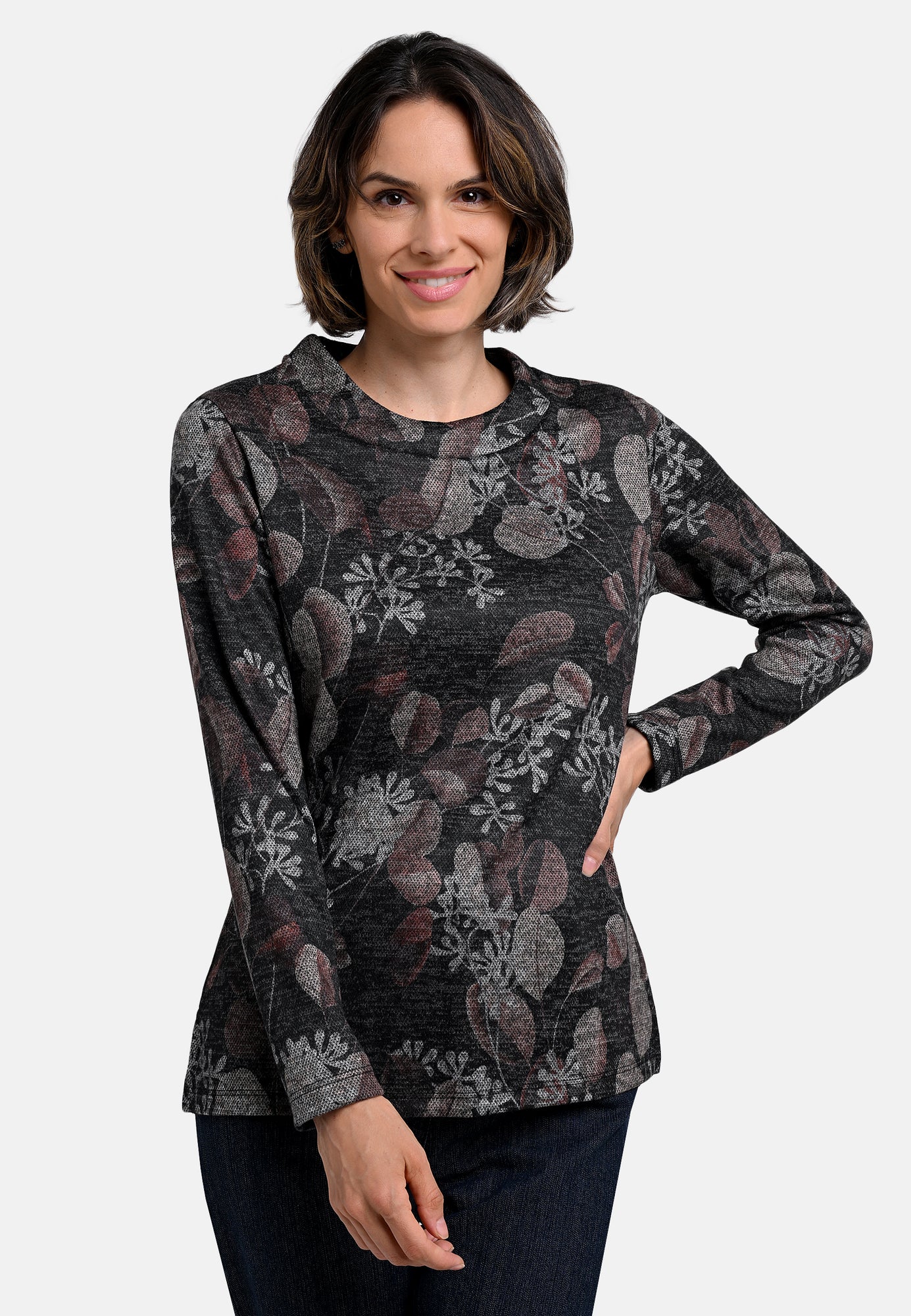 25818 Shirt mit Blätter-Print in Anthrazit/Braun