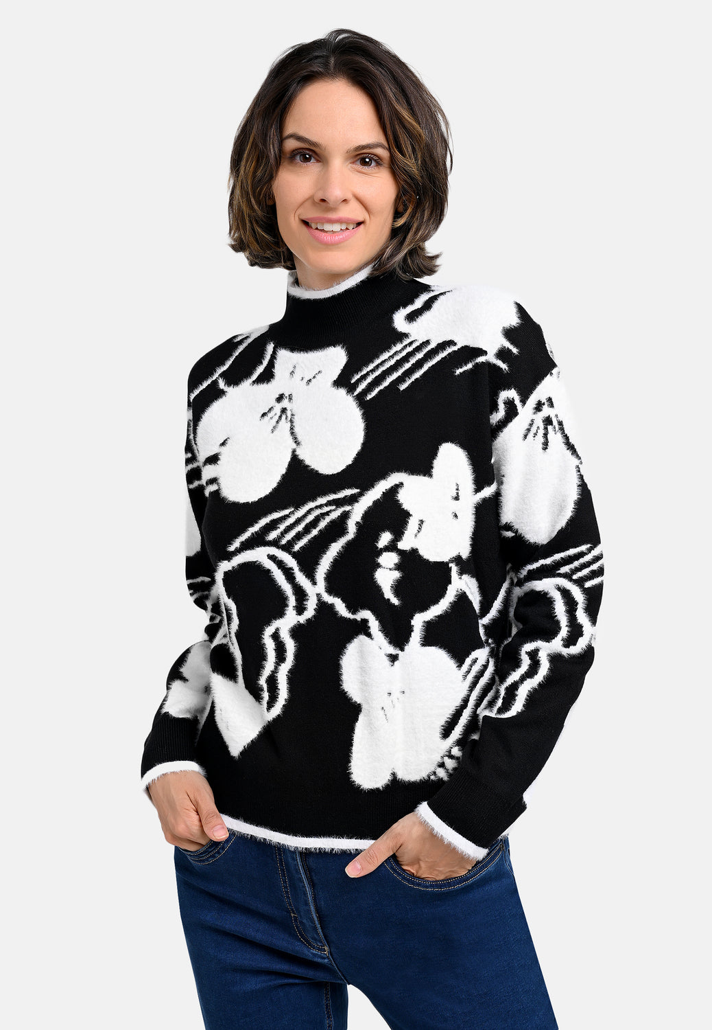25821 Strickpullover mit Blütenmuster in Schwarz/Weiß