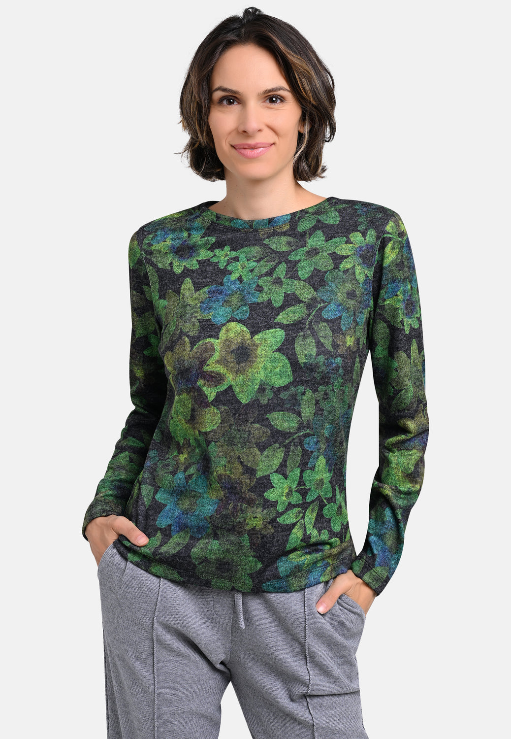 25714 Chemise en maille fine à imprimé fleuri vert/anthracite